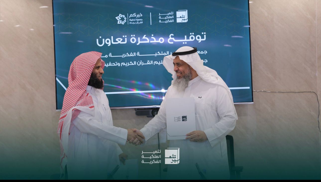 تم بحمد الله اليوم الأربعاء 28 جمادى الأولى 1447هـ الموافق 19/11/2025 توقيع مذكرة تفاهم بين جمعية تثمير الملكية الفكر...